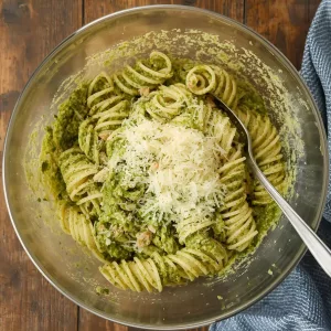 Broccoli and kale pesto pasta is a vibrant, nutrient-rich dish that combines the earthy flavours of green vegetables with the comforting texture of pasta. The pesto, made from fresh broccoli, kale, garlic, olive oil, nuts, and Parmesan cheese, delivers a powerful nutritional boost. Broccoli is packed with vitamin C, vitamin K, and fiber, which support immune function, bone health, and digestion, while kale adds iron, calcium, and antioxidants that help reduce inflammation and promote heart health. Together, these greens create a creamy, flavourful sauce that’s both wholesome and satisfying. When paired with whole-grain or legume-based pasta, the dish provides a balanced meal rich in protein, healthy fats, and complex carbohydrates—perfect for sustained energy and overall wellness.