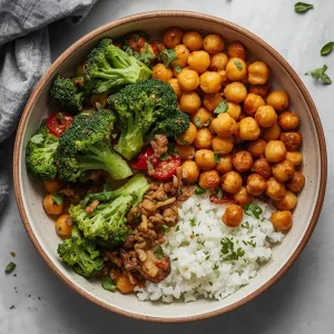 Broccoli, chickpea, and quinoa make a wholesome, protein-rich combination that’s both satisfying and deeply nourishing. This nutrient-dense dish blends tender broccoli florets, hearty chickpeas, and fluffy quinoa for a balanced meal packed with plant-based goodness. Broccoli contributes vitamin C, vitamin K, and antioxidants that support immune and bone health, while chickpeas add fiber, iron, and protein to promote digestive health and sustained energy. Quinoa, a complete protein containing all nine essential amino acids, enhances the dish’s nutritional profile and provides complex carbohydrates for long-lasting fuel. Tossed together with olive oil, lemon juice, and herbs, this simple yet flavourful meal supports overall wellness and makes an excellent choice for a light lunch or dinner.